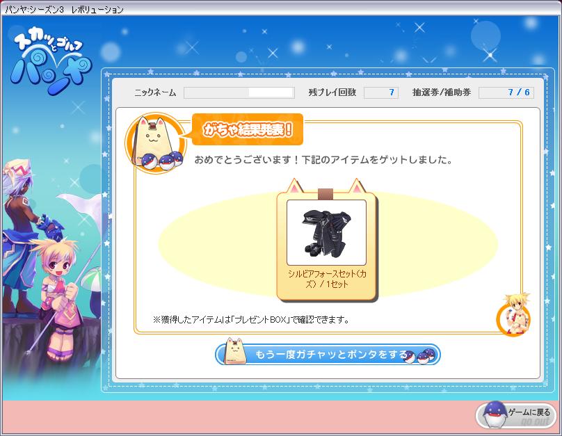 折角だからちょっとこれ着てプレイしてました^^(あれ?パンマスは?( --) ・・・・・