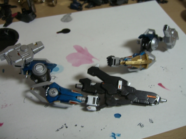ボディとか脚部はパーツが多い分一つ一つが小さいんだわ。そして塗装が随分ラク^^カラーリングも簡単に決めれるから時間がかからない。後は集中力との勝負ではみ出ないようにはみ出ないように・・・・。