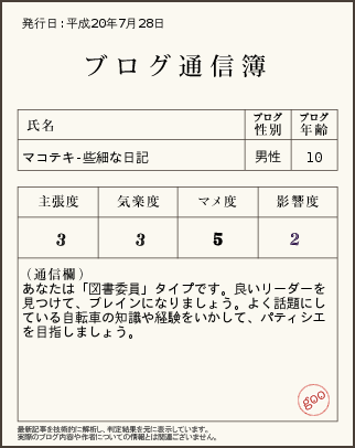 続いてブログの査定ってのがあったんで試しにやってみた^^